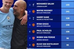 体育资讯10月6日讯 近日,德国足球转会网站盘点了在单一主帅治下球员进球榜,亨利在温格执掌下的阿森纳以打进175球傲居榜首。