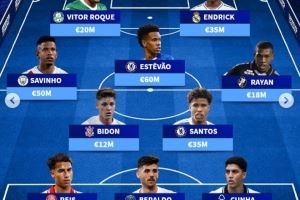 中场:布雷诺-比顿(科林蒂安,1200万欧)、安德烈-桑托斯(切尔西,3500万欧)、萨维尼奥(曼城,5000万欧)、埃斯特旺(切尔西,6000万欧)、拉扬(达伽马,1800万欧)